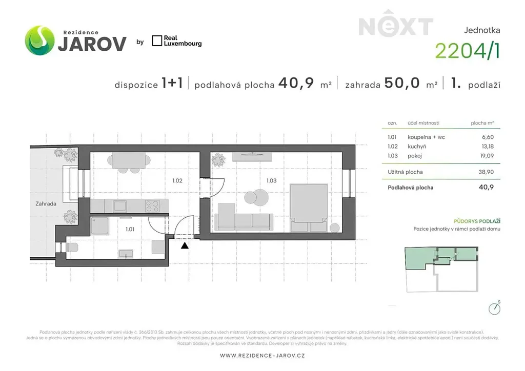 V exkluzivním zastoupení developera vám nabízíme ke koupi krásně zrekonstruovaný byt 1+1 se zahrádkou (50 m2) v novém projektu „Rezidence Jarov“ na Praze 3, v kvalitě novostavby.