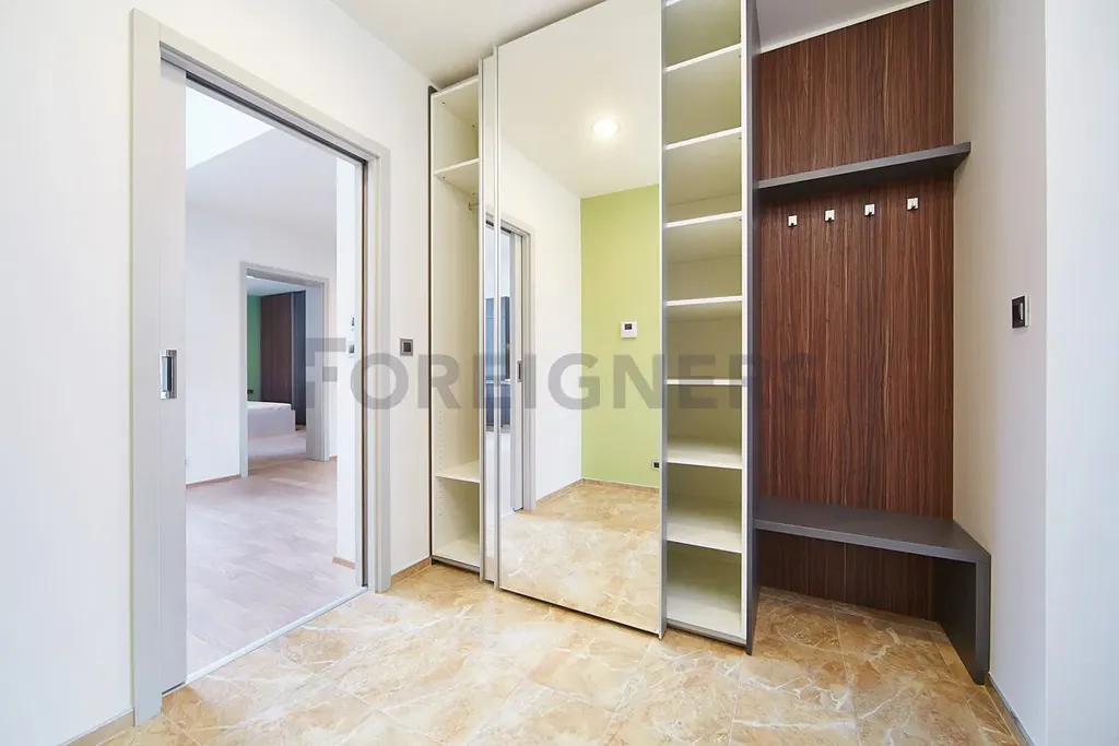 Byt je momentálně částečně zařízený a bude ještě dovybaven sedačkou, jídelním stolem se židlemi a televizí. Veškeré vybavení a materiály jsou ve vysoké kvalitě.