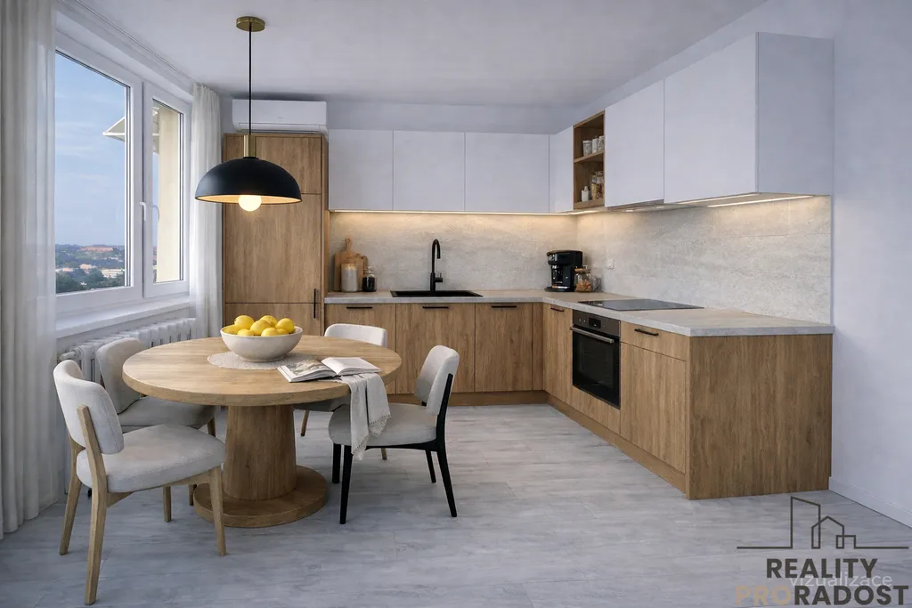Součástí prezentace jsou také vizualizace možného zařízení jednotlivých místností, které ukazují potenciál a možnosti budoucího uspořádání bytu.