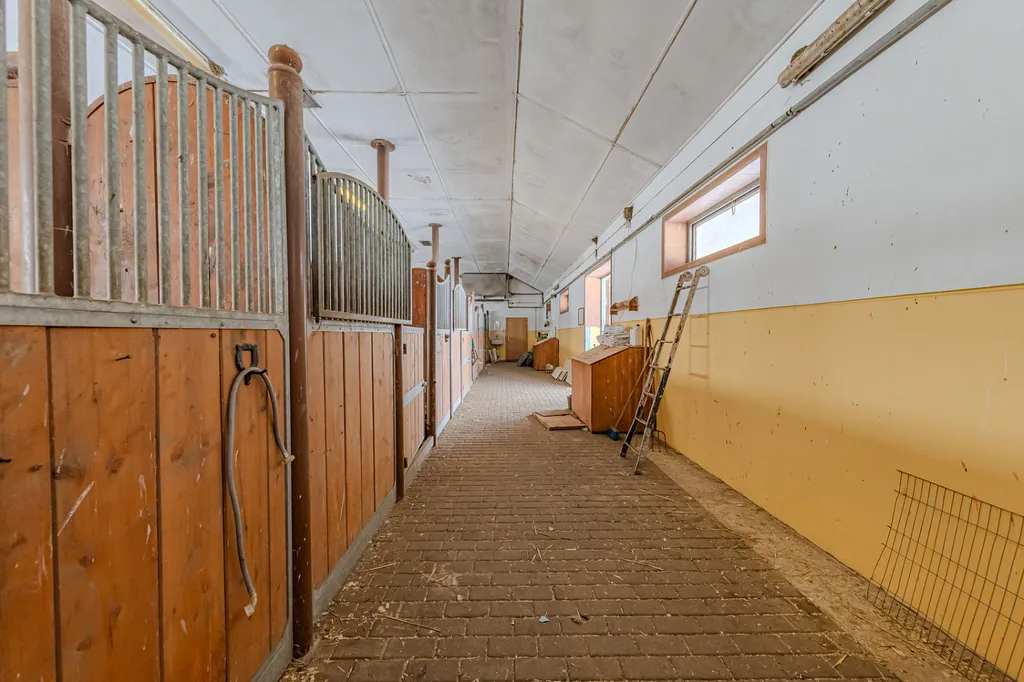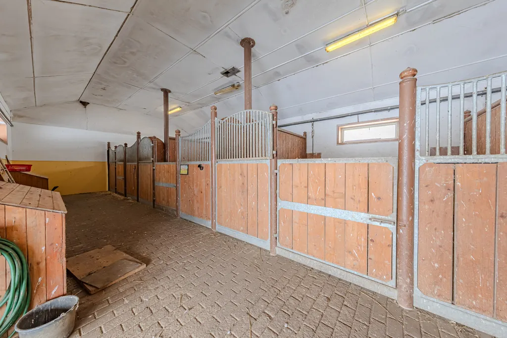 Do prvních stájových prostor je možný přímý vstup z domu nebo z kryté verandy dvoukřídlými dveřmi. Tyto prostory zahrnují 5 samostatných boxů, každý o velikosti 17 m².