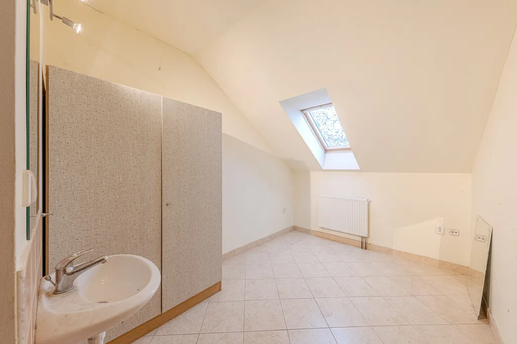 Součástí přízemí je také prostorná místnost o velikosti 14 m² s výhledem do dvora, která přímo navazuje na stájové prostory a umožňuje pohodlný průchod z domu do stájí.