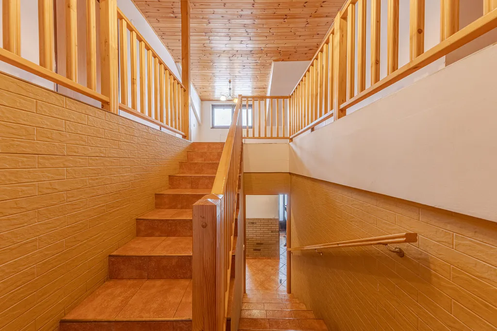 V centrální části domu se nachází schodiště, prostorná chodba a pět samostatných podkrovních místností, každá s oknem a umyvadlem, o velikostech 9–15 m². V patře je kuchyňka, dvě samostatné toalety a dvě samostatné sprchy.