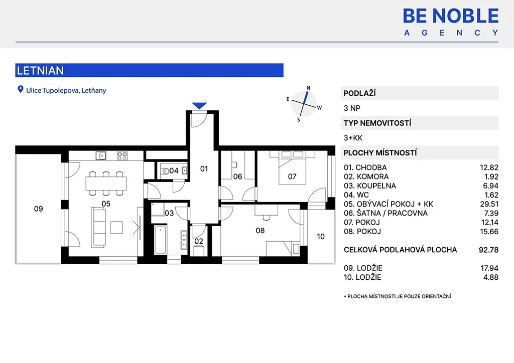 Rádi bychom vám nabídli zcela nový byt 3+kk o celkové podlahové ploše 92,8 m² v projektu Letnian v Letňanech, v docházkové vzdálenosti od obchodního centra i kompletní občanské vybavenosti. Byt se nachází v klidné části s výhledem do zeleně a díky chytře řešené dispozici jej lze jednoduše upravit i na 4+kk.