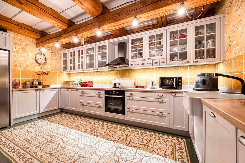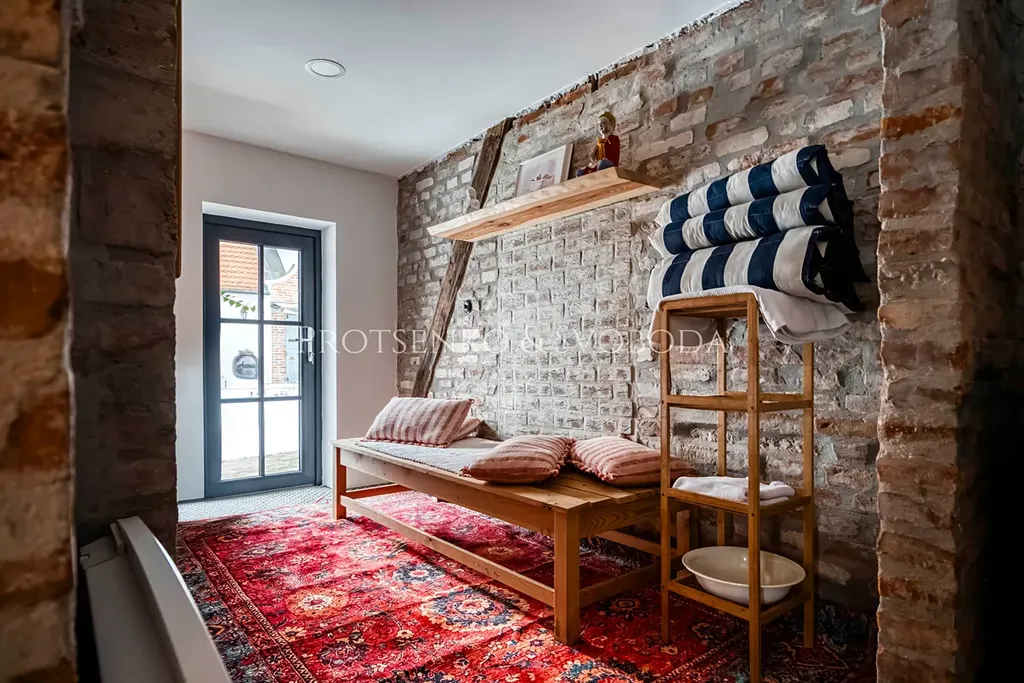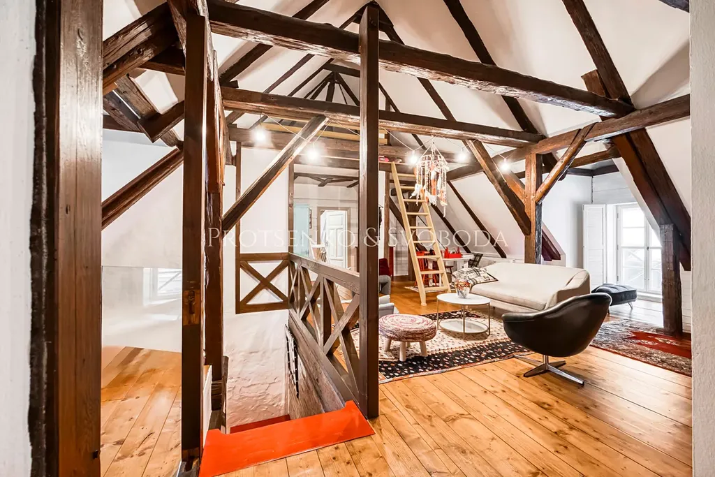 Zachované původní trámy, masivní dřevo, přirozené materiály, ruční detaily a světlo, které prostupuje každým koutem. Interiér je promyšlený do posledního detailu – propojuje historický charakter s komfortem moderního bydlení.