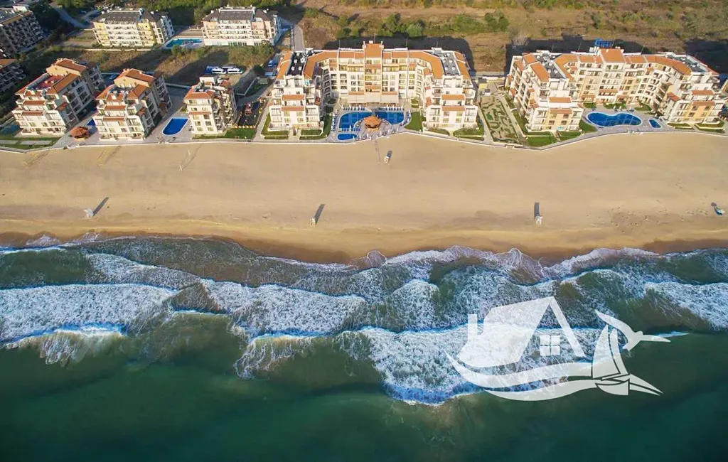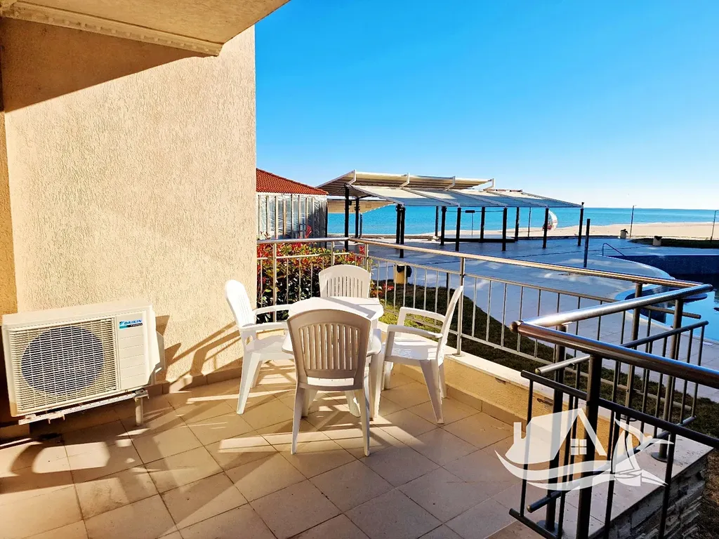 Nabízíme ke koupi nádherný dvoupokojový apartmán o celkové ploše 68 m², který se nachází ve vyvýšeném přízemí prestižního komplexu na první linii u moře ve městě Obzor. Tento apartmán má praktické a funkční uspořádání, které nezahrnuje žádné průchozí místnosti. Skládá se ze vstupní chodby, prostorného obývacího pokoje s kuchyňským koutem a jídelním prostorem, samostatné ložnice, koupelny s toaletou a velké terasy. Terasa je přístupná z obou místností a umožňuje přímý vstup k bazénu a na pláž. Z apartmánu se nabízí jedinečný výhled na moře i na bazén, což z něj činí ideální místo pro odpočinek a relaxaci.