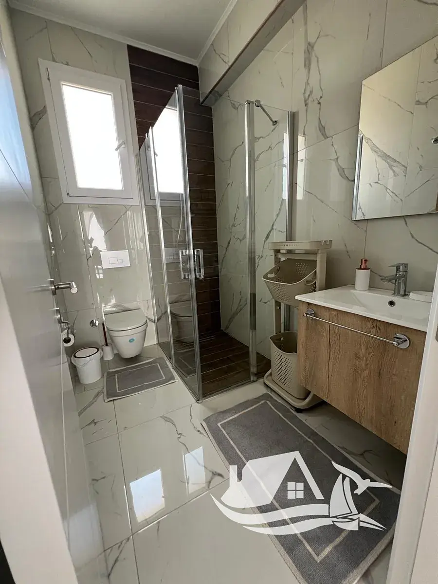 Apartmán nabízí světlý obývací pokoj s plně vybavenou kuchyní, dvě pohodlné ložnice s vestavěnými skříněmi, moderní koupelnu a soukromý balkon. Vrcholem této nemovitosti je velká soukromá střešní terasa, ideální pro opalování, venkovní stolování, zábavu s hosty nebo prostě jen pro kochání se úchvatným výhledem na moře, hory a okolní přírodu.