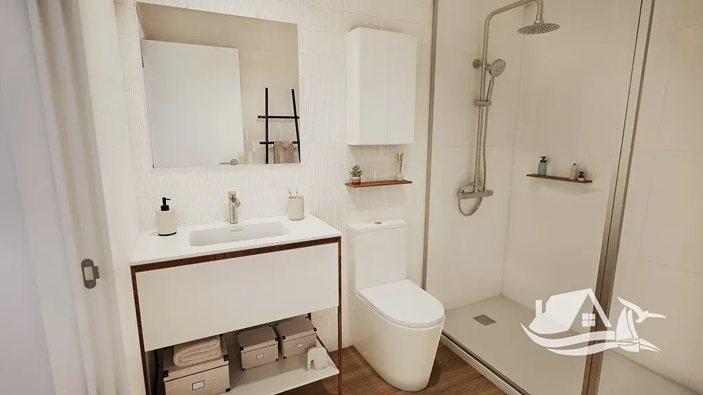 Interiéry jsou vybaveny moderními prvky, klimatizací a vestavěnými skříněmi, které zjednodušují organizaci domácnosti, a základními spotřebiči pro pohodlí každodenního života. Terasy poskytují další prostor pro relaxaci na čerstvém vzduchu a plně využívají středomořského klimatu při snídani i večerních posezeních s výhledem. Společné zázemí zahrnuje dobře vybavenou posilovnu, která umožní udržet aktivní životní styl bez nutnosti docházení, a prostory navržené pro odpočinek i společenské aktivity.