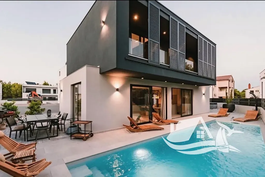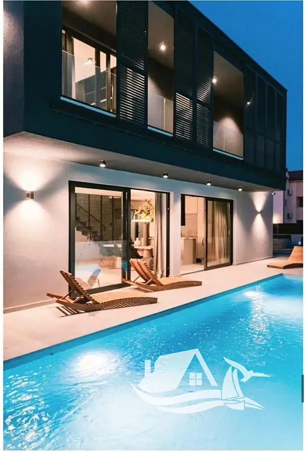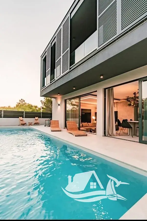 Pouhých 350 metrů od moře, v blízkosti historického města Šibenik, se nachází moderní designová vila, která dokonale spojuje současnou architekturu s uvolněným středomořským životním stylem. Tato nemovitost nabízí ideální rovnováhu mezi soukromím, komfortem a atraktivní polohou u pobřeží.