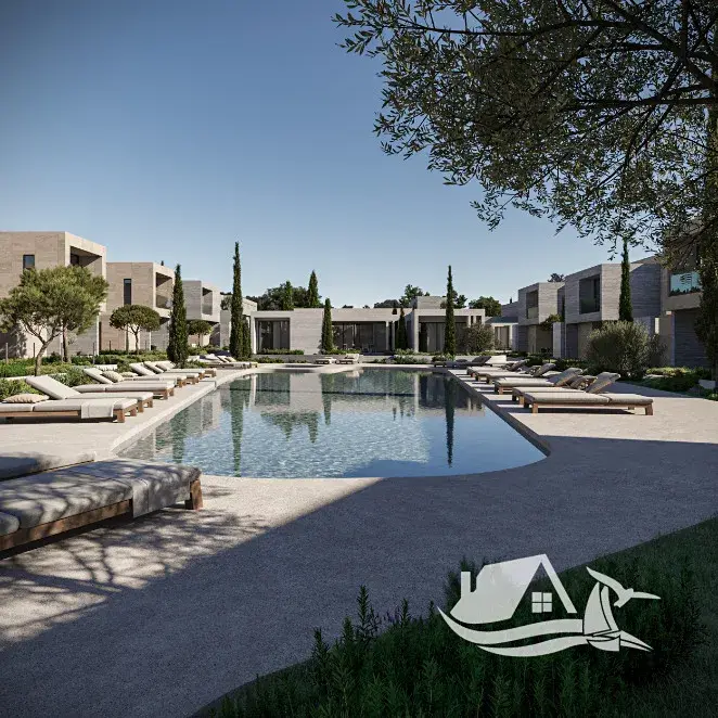 Každá vila je navržena jako moderní nadčasový domov u moře – čisté linie, elegantní styl, kvalitní materiály a důraz na prostor a světlo.