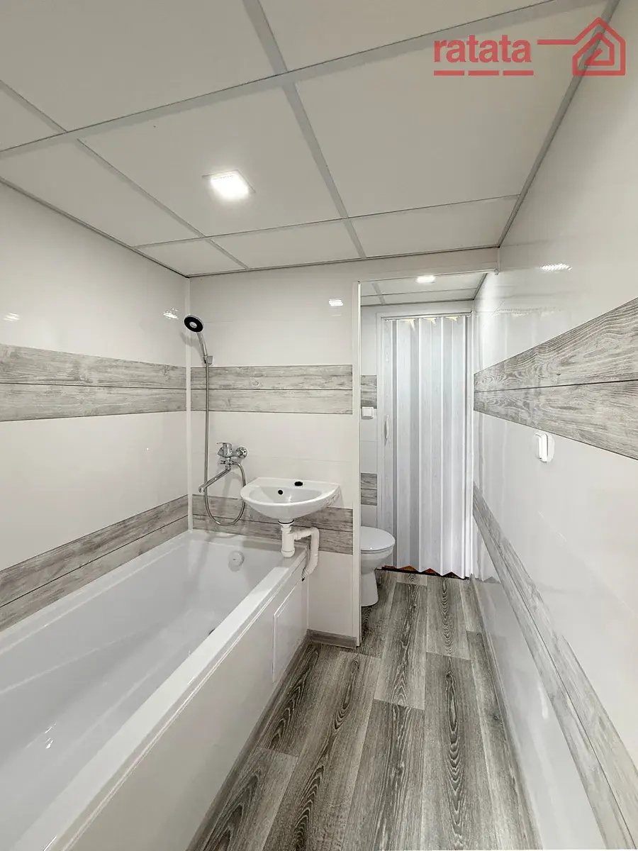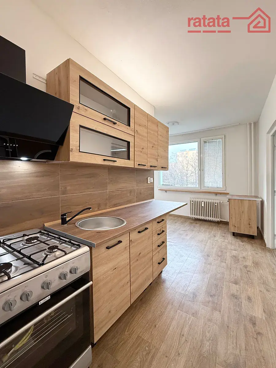 Je zde kuchyňská linka, plynový sporák, vana, umyvadlo a WC. Na podlahách je položeno lino. Byt je volný k nastěhování IHNED.