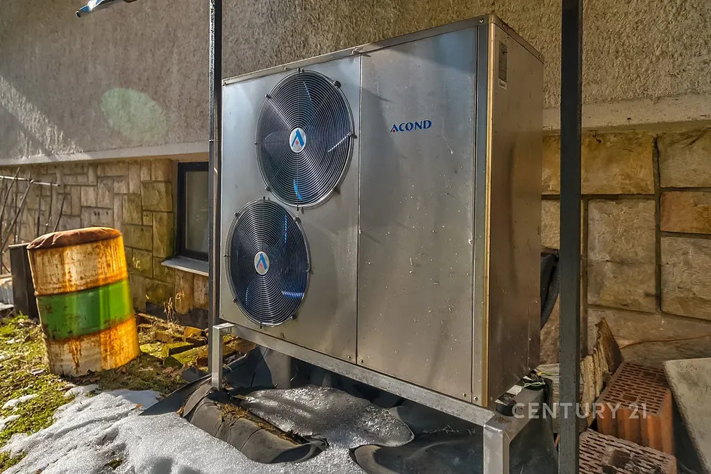 Vytápění: úsporné tepelné čerpadlo + krbová kamna v obývacím pokoji