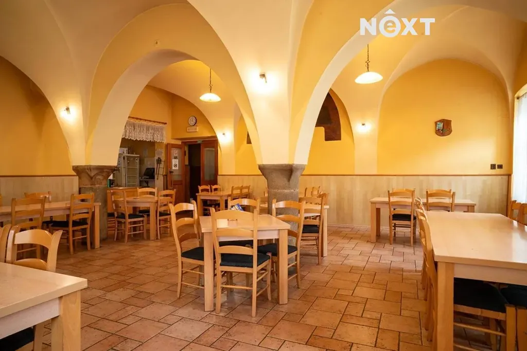 V přízemí objektu se nachází zavedená a plně funkční restaurace se salonkem, která má vlastní vstup z ulice a disponuje kompletním zázemím pro provoz. V nadzemních podlažích se rozprostírá celkem šestnáct pokojů, které slouží jako fungující ubytování. Pokoje jsou udržované, průběžně využívané a připravené k okamžitému převzetí provozu. Nad ubytovací částí se nachází rozsáhlá půda, která nabízí možnost vybudování dalších pokojů nebo stylových apartmánů a tím dále rozšířit kapacitu i výnosnost objektu.