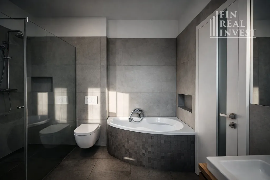Velkou předností bytu je nadstandardně řešená koupelna: