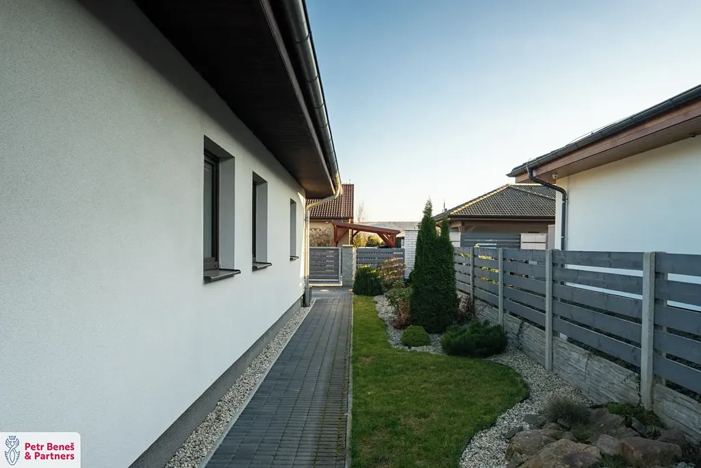 Dům byl kolaudován v roce 2016 a nabízí užitnou plochu přibližně 138 m². Dispozice je promyšlená tak, aby poskytovala dostatek prostoru pro každodenní rodinný život i chvíle odpočinku. Dominantou domu je velkorysý obytný prostor s kuchyní a obývacím pokojem, který se díky velkým proskleným plochám přirozeně otevírá do zahrady a na zastřešenou terasu. Interiér tak působí mimořádně světlým, vzdušným a velmi příjemným dojmem.
