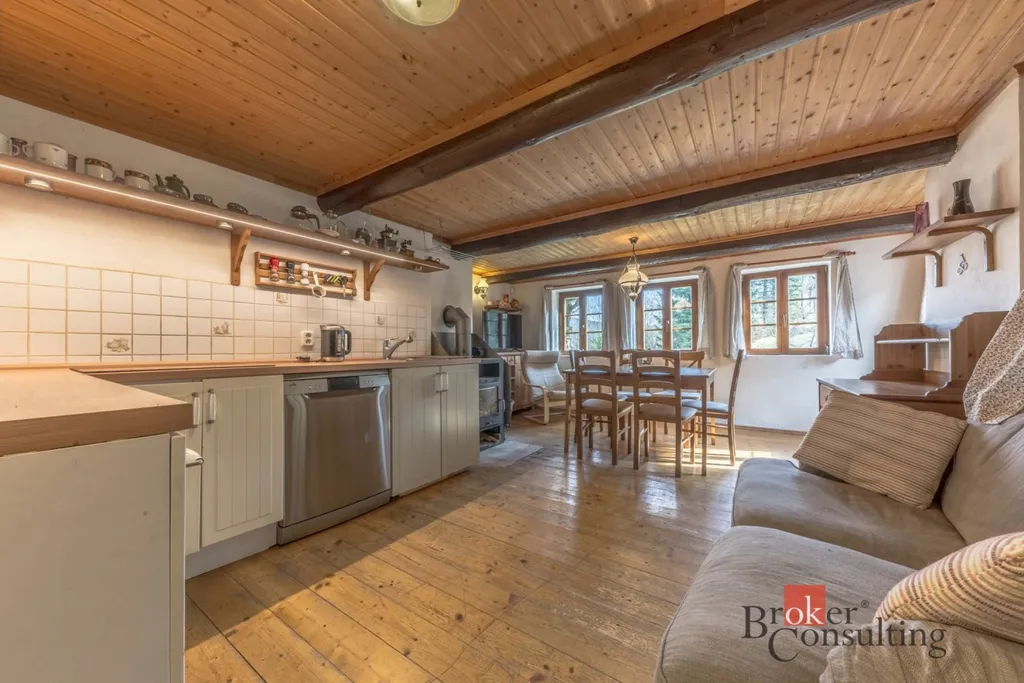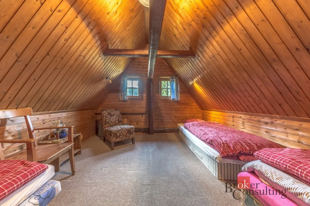 Exkluzivně nabízíme k prodeji krásnou chalupu na pozemku 1.132 m2 v Josefově Dole (místní část Dolní Maxov). Velmi dobře udržovaná zděná chalupa má dispozici 4 kk. V přízemí se nachází útulná hlavní obytná místnost k jídelnou a kuchyní. Kuchyně je vybavena moderní kuchyňskou linkou, novou varnou deskou, ledničkou, myčkou nádobí a elektrickou troubou. Posezení s rodinou a přáteli Vám zde zpříjemní kvalitní krbová kamna na dřevo. V přízemí se také nachází ložnice s pracovním (home-office) koutem, koupelna s WC a spižírna. V podkroví jsou dvě další ložnice a druhá koupelna s WC. V suterénu se dále nachází krásná nová sauna s výhledem na hory. K dispozici je také dílna a prosorný sklad, využitelný třeba na uskladnění kol a lyží. K vytápění domu kromě krbových kamen slouží také akumulační elektrická kamna, která lze před příjezdem zapnout na dálku. Voda je čerpána z vlastní vrtané studny na pozemku. Odpadní vody jsou sváděny do jímky. Náklady na provoz výrazně snižuje instalovaná fotovotaická elektrárna na střeše s výkonem 4kW, která je připojena na záložní baterii. Nemovitost má kvalitní pevné internetové připojení a je chráněna zabezpečovacím zařízením od společnosti Jablotron. Chalupa prošla rekonstrukcí v roce 2006, kdy byla mírně upravena dispozice, byly provedeny nové rozvody a v přízemí byla osazena nová dřevěná okna s izolačními dvojskly. Přístup k chalupě je celoročně bezproblémový z místní nefrekventované komunikace. Na upravené ploše na vlastním pozemku nad chalupou lze pohodnlně zaparkovat až tři auta. Zásadní výhodou této nemovitosti je krásný panoramatický výhled na centrum Josefova Dolu s dominantou kostela Proměnění Páně a jizerské vrcholy kolem Jedlové a Pekla. Josefův Důl se skvělé výchozí místo pro aktivní odpočinek v Jizerkách, ať už se vydáte na kolo, běžky nebo pěší výlet. Infastruktura v obci se velmi dynamicky rozvíjí. Několik set metrů od chalupy je rekonstruovaná Huť Marie s příjemnou kavárnou, fitness/wellness centrem, lezeckou stěnou a dalšími aktivitami. Plně vybavená chalupa byla velmi pečlivě opečována a noví majitelé si tak mohou užívat Jizerské hory prakticky ihned bez nutnosti velkých úprav či rekonstrukce. Zachovalých chalup na hezkém a přístupném místě je v Jizerkách jako šafránu a tuto vřele doporučujeme vážným zájemcům k osobní prohlídce.