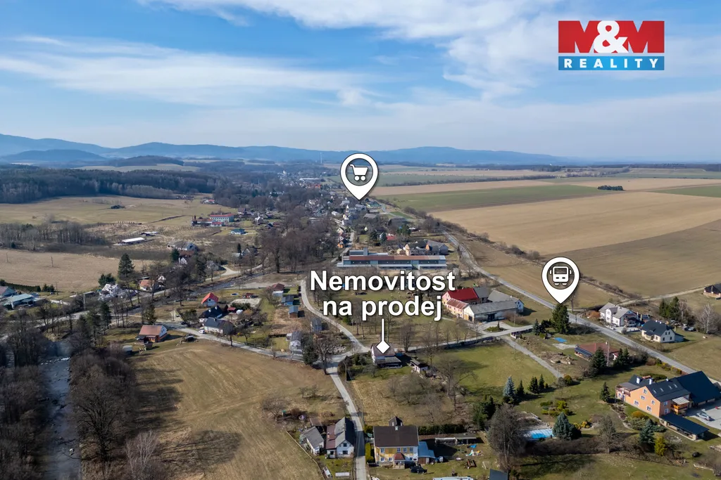 Ve výhradním zastoupení nabízíme prodej rodinného domu 4+1 se zahradou, který se nachází v klidné části obce a jen 400 m od koupaliště. Dům je v původním, ale udržovaném stavu. V přízemí je kuchyň, obývací pokoj, technická místnost, veranda s chodbou, koupelna, samostatná toaleta a v patře jsou další 3 pokoje. Vytápění elektrickými přímotopy nebo kamny, ohřev vody bojlerem, veřejný vodovod, studna na zalévání, septik s přepadem do trativodu, ale před domem je již nová kanalizace - stačí se jen napojit. Za domem jsou chlévy a kůlna, v ceně nemovitosti je i rozlehlá zahrada. Veškerá občanská vybavenost v místě a ve vedlejší Vidnavě. Vhodné jak k trvalému bydlení, tak k rekreaci a nebo jako investice za účelem pronájmu. Nemovitost je možné financovat úvěrem, který vám zdarma vyřídíme. Více informací v RK.