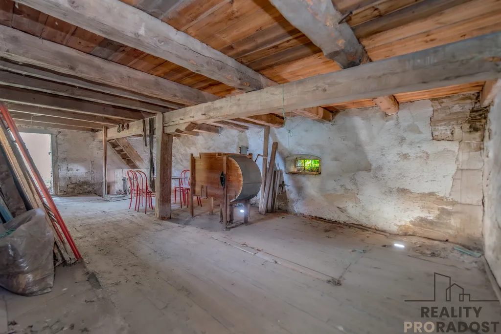 Na začátku Dunajovic se nachází nenápadná stodola, kterou se dostanete na pozemek s ovocnými stromy a úžasným výhledem. Nevěděla jsem, kam se mám dívat dříve a najednou jsem uviděla kamennou stavbu - bývalou sýpku. Nádhernou stavbu s dřevěnými masivními trámy a kouzlem, za které by se nemusel stydět romantický film. Úplně jsem tam viděla fotoateliér nebo místo, kde by se mohli konat svatby či narozeniny. Pokud byste tu chtěli trávit volný čas, tak je zde 11 meruněk a 2 jabloně a spousta místa i na podnikání, či na uložení veteránů.