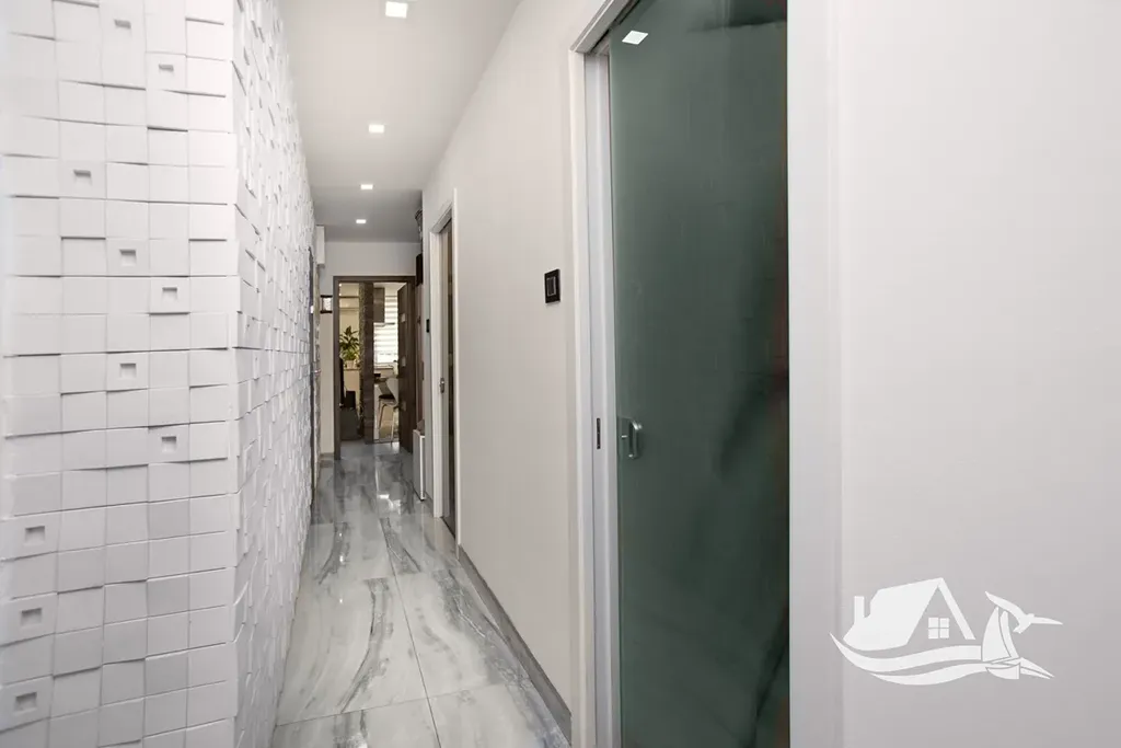 Byt je orientován na západ, takže interiér zaplavuje příjemné odpolední a podvečerní světlo, které vytváří útulnou atmosféru. Kompletní rekonstrukce proběhla před 5 lety a zahrnovala nové elektroinstalace, vodovodní rozvody i snížené stropy s instalovaným úsporným LED osvětlením ve všech místnostech. Nainstalovaná klimatizace zajišťuje komfort během horkých letních dní a podtrhuje moderní standard bydlení.