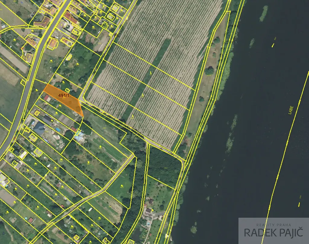 velmi kvalitní bonita úrodné půdy Polabské nížiny s malebným výhledem na řeku Labe uprostřed bohaté zeleně.