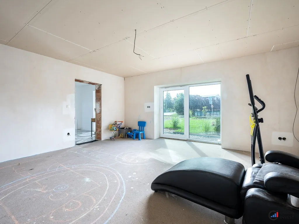 > velká místnost s přímým vstupem na zahradu (vhodná pro podnikání, pracovnu, ateliér nebo samostatnou obytnou část)