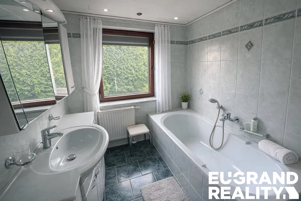 Pozemek o velikosti 720 m² je mírně svažitý a poskytuje dostatek prostoru pro zahradu, odpočinek nebo další využití dle představ nového majitele.Střecha je pokryta tradiční bobrovkou (Biberschwanz). Okna jsou vybavena roletami, které zvyšují komfort bydlení. Nemovitost je prodávána soukromým vlastníkem z důvodu stěhování.