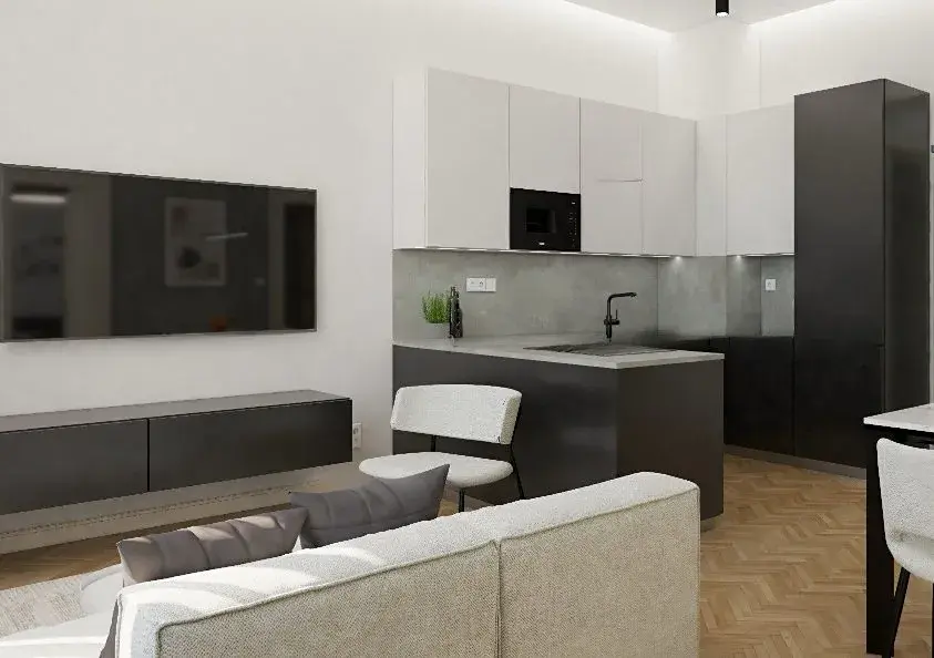 Byt je navržen s důrazem na maximální využití prostoru a moderní městské bydlení, díky čemuž nabízí komfortní a funkční řešení i na menší ploše.