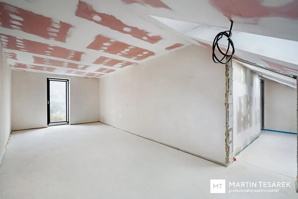 Tato nízkoenergetická novostavba z roku 2025 nabízí velkorysou dispozici 7+KK a je ve fázi těsně před dokončením. Uvnitř najdete hotové omítky, sádrokartonové stropy, kompletní přípravy elektroinstalace, rozvodů, chytré domácnosti i pečlivě provedené zateplení. Velkoformátová hliníková okna přivádějí do domu spoustu světla a fasáda už čeká jen na to, až kolem ní rozkvete zahrada.