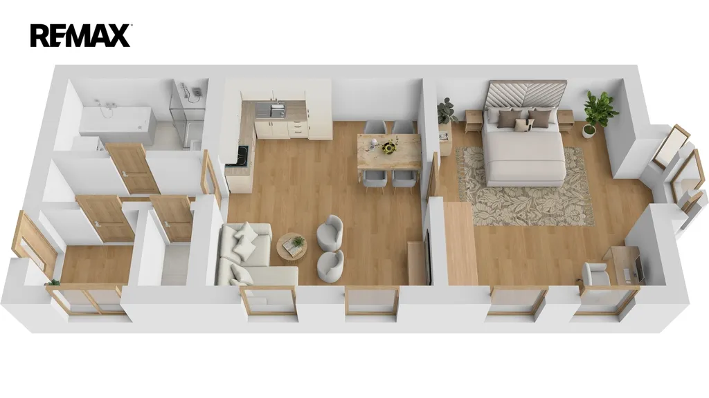 Nabízíme Vám k pronájmu byt dispozičně řešený jako 2+kk s podlahovou plochou téměř 61 m2 na Masarykově náměstí v Polici nad Metují.