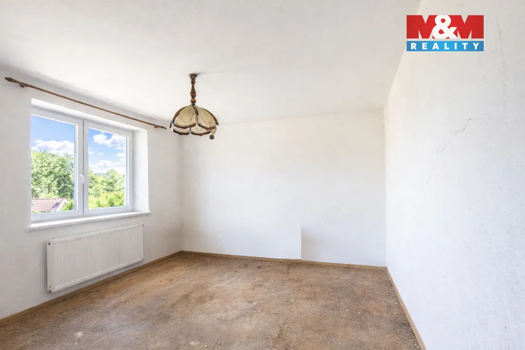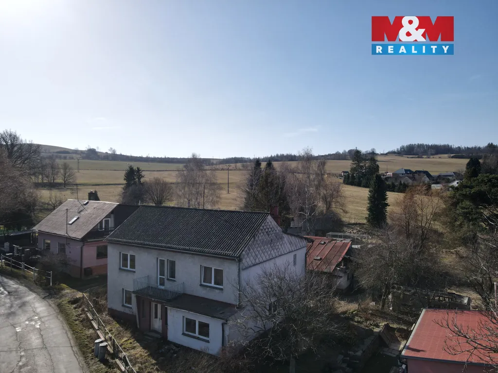 Rodinný dům k prodeji je určený k celkové rekonstrukci dle vlastních představ. Pro inspiraci slouží vizualizace fotografií, které napoví jak by mohla nemovitost vypadat po stavebních úpravách. Dům je situován v samém centru obce, ale zároveň v klidném místě a přilehlé pozemky poskytují dostatek soukromí. Dům je možno využívat jako dvougenerační, neboť 1NP tvoří dispozice 2+1, v 2NP je pak dispozice bytu 3+1, plus komora a dva balkony. V domě jsou dvě samostatné WC, jedna koupelna, dům je částečně podsklepen. Voda do domu je zavedena z vlastní studny, vodovodní řád je u domu, avšak není zavedena vodovodní přípojka, vytápění zajišťoval plynový kotel, který je nyní nefunkční.V současné době je dům vytápěn přimotopem, horní část objektu má částečně rozvody již v mědi, majitel obývá pouze horní patro. Na pozemku je zděná budova s garáží a kůlna. Zastávka MHD je téměř u domu, obchod 2 minuty chůze, v obci je základní i mateřská škola, hřiště, restaurace, bowling i kulturní dům.