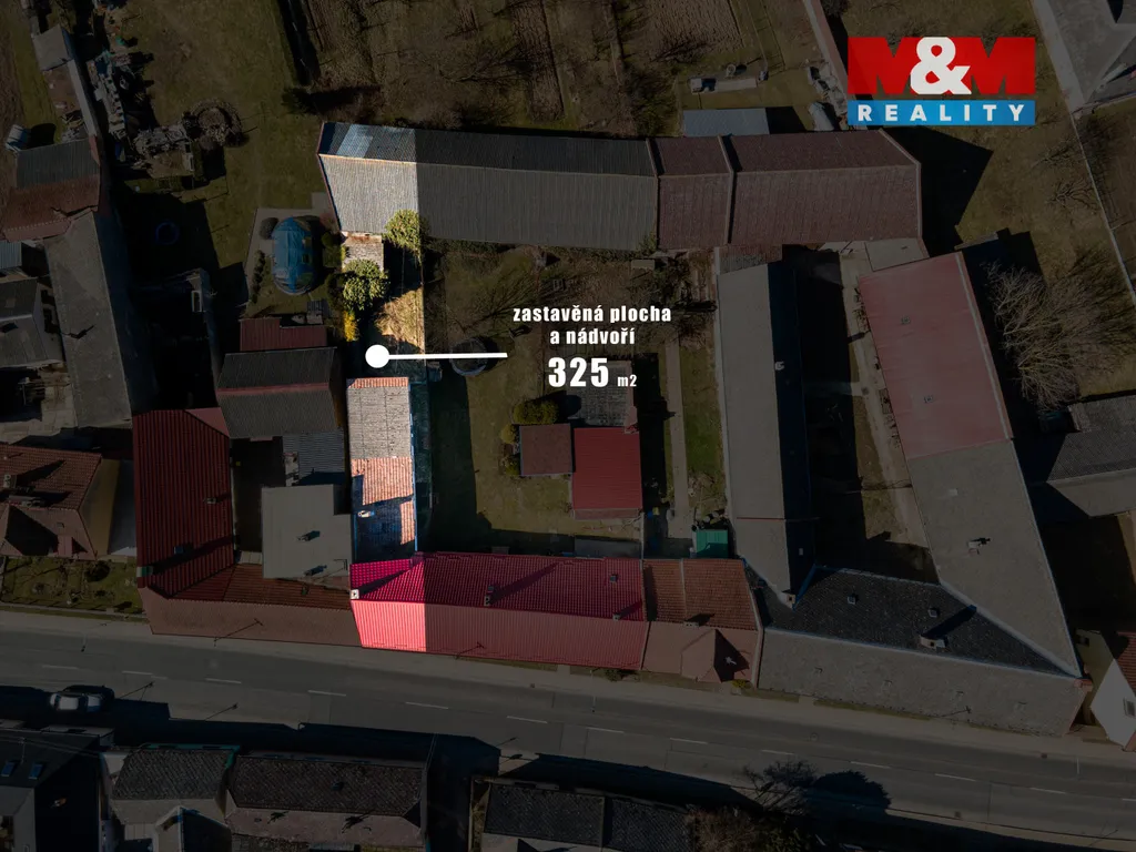 Dům stojí na vlastním pozemku o velikosti 325 m². Součástí je také stodola a menší zahrádka za domem vhodná pro zahradničení nebo odpočinek.