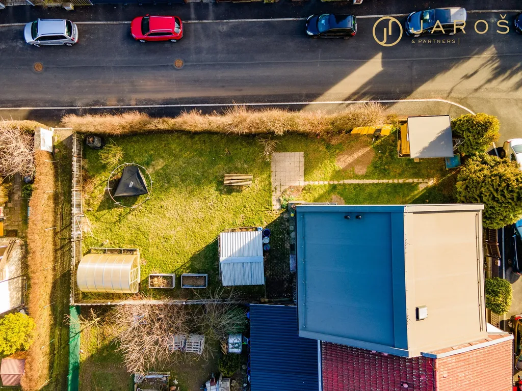 Velkou výhodou této nemovitosti je, že se jedná o dům stojící z jedné strany samostatně, díky čemuž je zahrada prostornější a je možný přístup i z přední části domu.