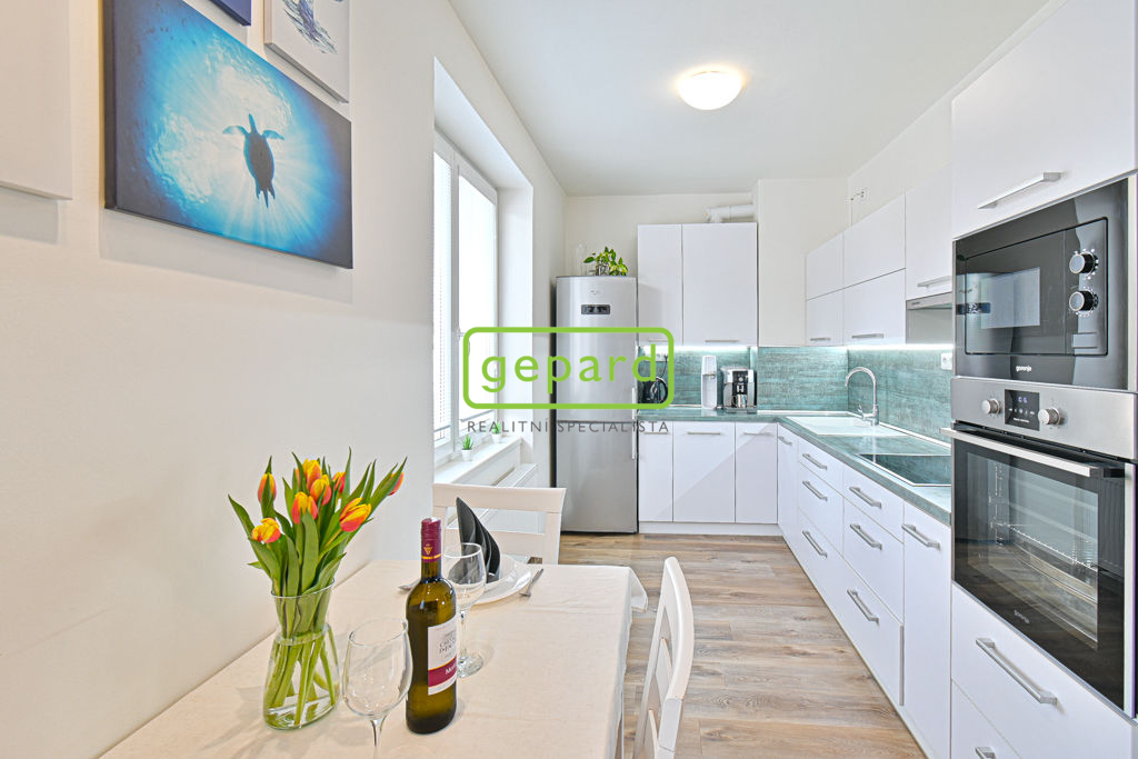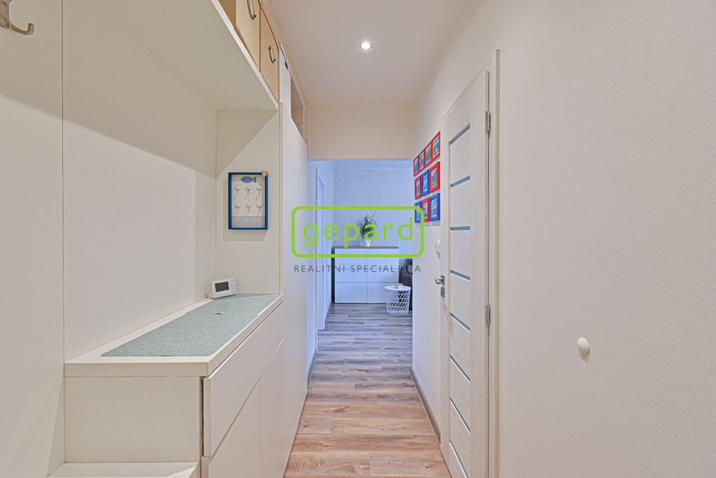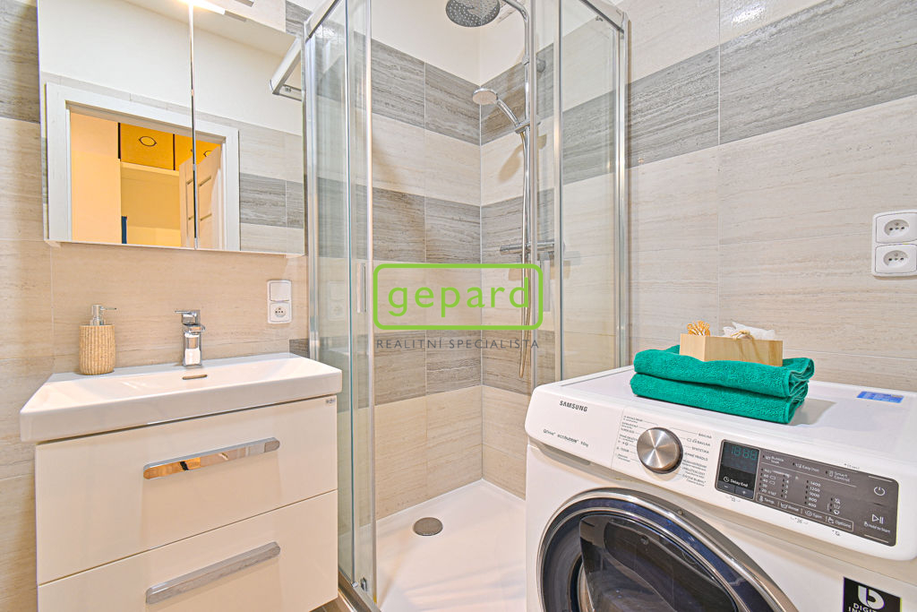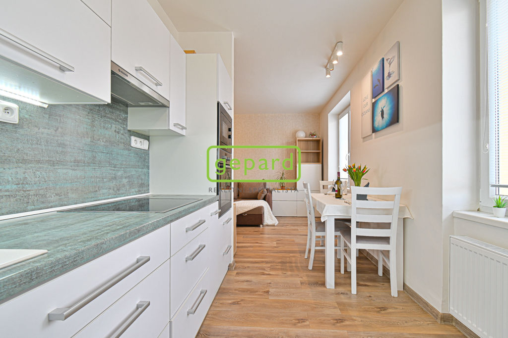 Byt je po kompletní rekonstrukci ve velmi pěkném stavu a je kompletně zařízený nábytkem a domácími spotřebiči. Je umístěný v 1. patře a jeho dispozice je tvořena vstupní chodbou, samostatným WC, koupelnou, ložnicí, balkonem a obývacím pokojem s odděleným kuchyňským koutem. Koupelna je vybavena vanou i sprchovým koutem a je v ní i prostor na pračku. Výhodou je vlastní vytápění i ohřev vody plynovým kotlem. K bytu patří dvě velké zděné sklepní kóje ( 6,26 m2 a 8,4 m2) v suterénu domu, kde je i společná kolárna/kočárkárna. Nastěhování možné od 15.5.2026.