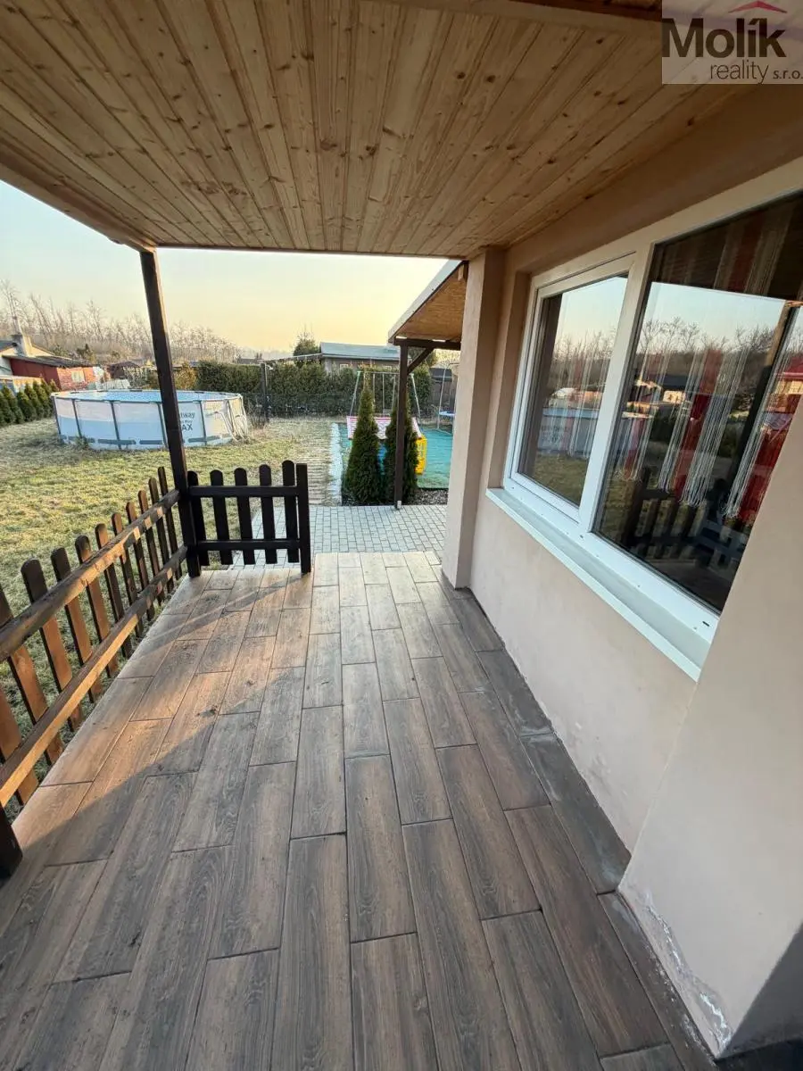 Velkou výhodou je zastřešená terasa se zámkovou dlažbou, která umožňuje příjemné posezení.