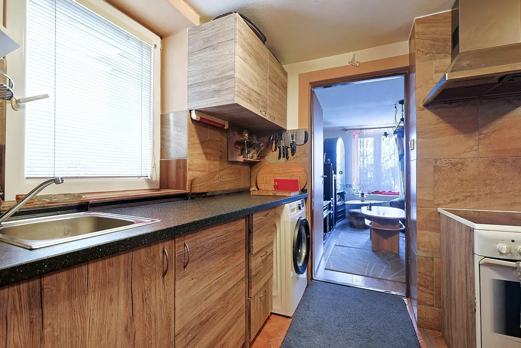 Samostatná jednotka s vlastním vstupem: pokoj 13,86 m², kuchyně 10,73 m², ložnice 9,24 m², sprcha a WC. Pronajatá zvlášť — vhodná pro nájemce, kteří preferují oddělený provoz.