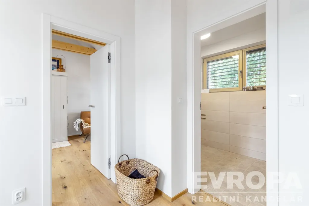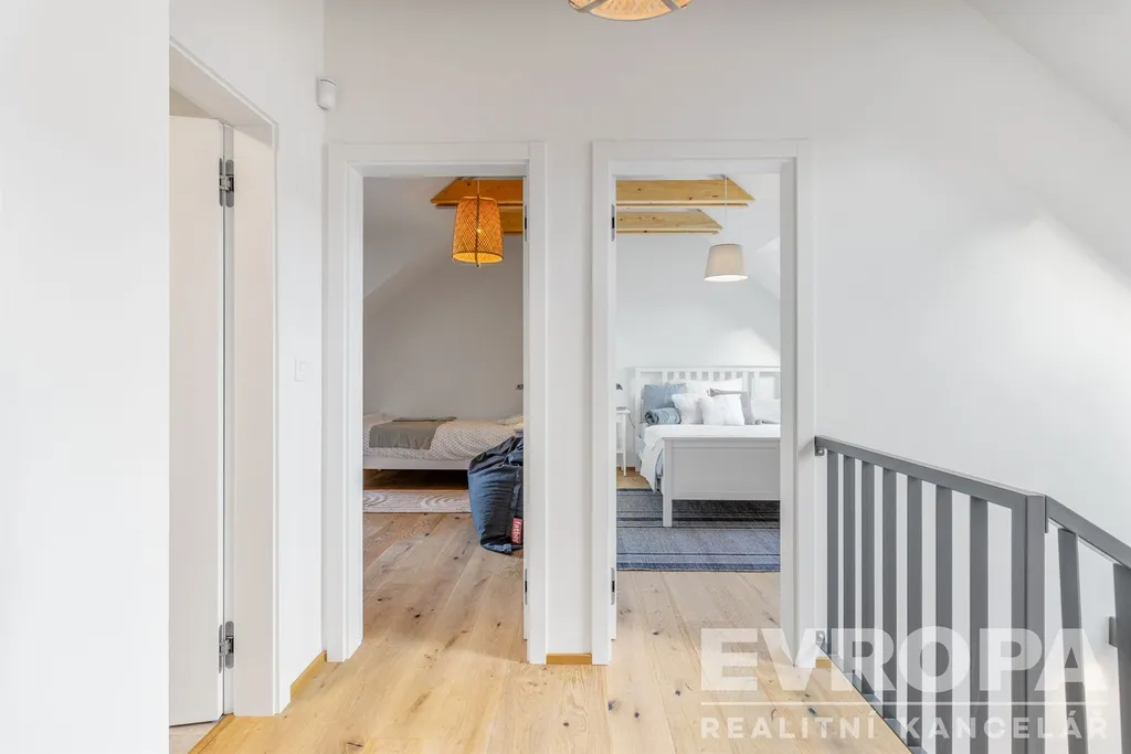 Dům se v prvním patře skládá z předsíně, samostatného WC, šatny, technické místnosti a prostorného obývacího pokoje s kuchyňským koutem. V druhém patře jsou tři ložnice a koupelna s wc.