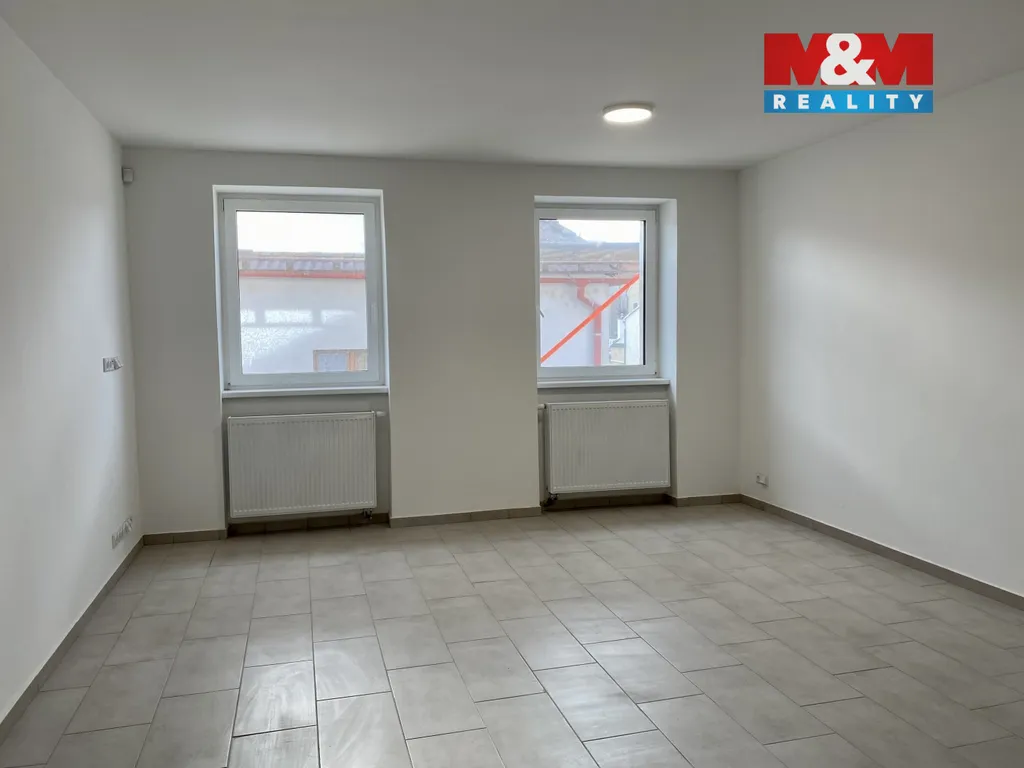Nabízíme pronájem nově vybudovaného bytu 1+kk o velikosti 45 m2 v centru města Louny s možností vchodu z Pražské ulice, nebo z České přes společný dvůr.