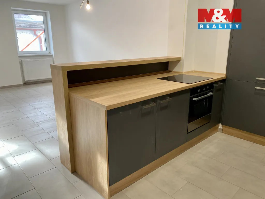 V kuchyni se nachází nově vybudovaná kuchyňská linka s pultem, sklokeramickou deskou, myčkou, vestavěnou lednicí a mrazákem.