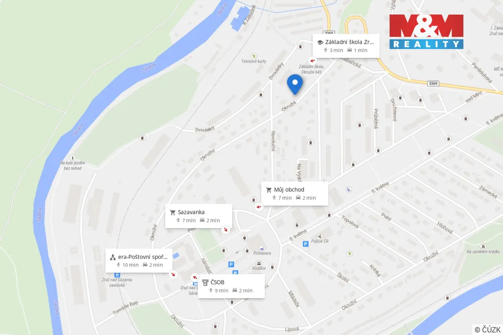 Prodej bytu 3+1 v 2. patře zděného domu o užitné ploše 72 m² v klidné části obce Zruč nad Sázavou, ulice Okružní. Byt má neprůchozí samostatné pokoje, samostatnou kuchyň se sporákem a spíží, koupelnu s vanou a umyvadlem a samostatné WC. Vytápění centrálním plynovým kotlem s rozvodem do radiátorů, dům je napojen na veřejný vodovod a kanalizaci. Součástí domu je společná zahrada, v 1. PP sušárna, mandl, kolárna, prádelna a sklep. Klidná lokalita, byt je ihned volný.