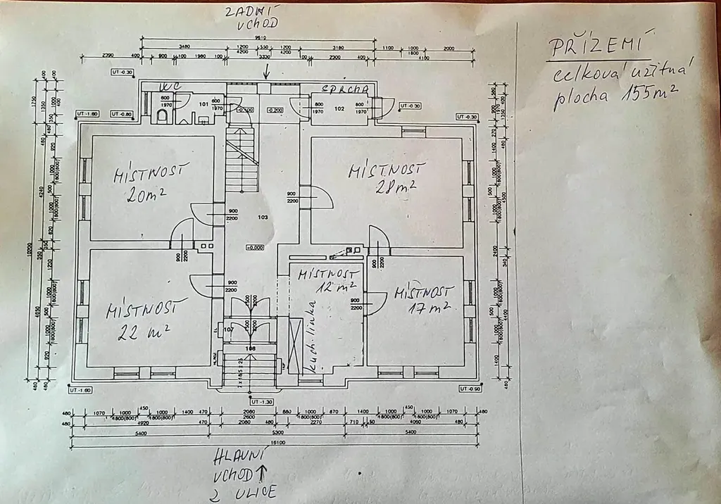 V přízemí se nachází velká uvítací kancelář, místnost s kuchyňským koutem a posezením, další 3 prostorné místnosti, koupelna se sprchou a umyvadlem, samostatné WC s pisoárem a umyvadlem. Z chodby je výstup jak do dvora tak schodištěm do mezipatra a 1.patra.