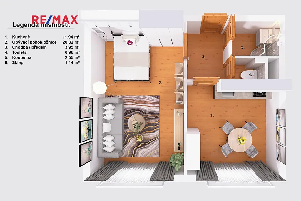 Výměry jednotlivých místností pak můžete nalézt v přiloženém půdorysu. Součástí bytu je i sklepní kóje v přízemí domu o výměře cca 1.14 m2. Parkování je možné kdekoliv v okolí domu.