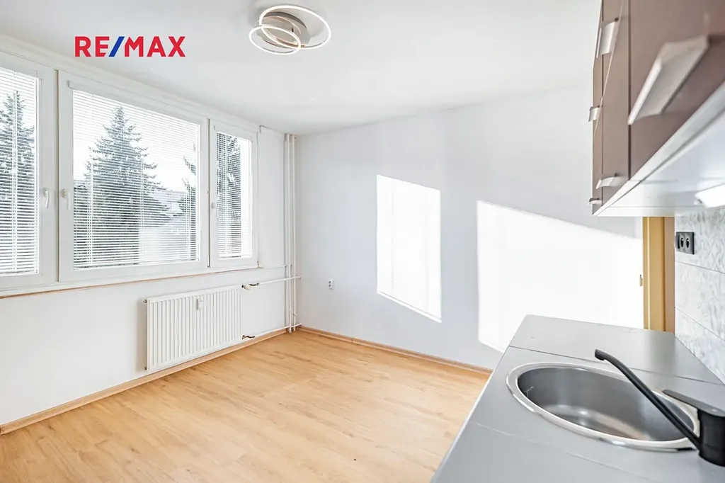 Byt se nachází ve třetím patře bytového domu s výtahem. Dům je zateplený a má nová plastová okna. Byt jako takový rovněž prošel rekonstrukcí, takže Vám dodá na pocitu útulného bydlení ve svěžím slunném domově. Při vstupu do bytu se nacházíme v předsíni. Po naší levici najdete koupelnu s přípravou na pračku a sušičku a dále oddělenou toaletu. Před Vámi pak kuchyni s dostatkem prostoru k využití i coby jídelny a napravo od Vás pak obývací pokoj/ložnici. Byt je tak vhodný pro jednotlivce nebo páry, kteří uvažují o započetí nové životní kapitoly.
