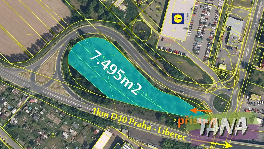 Nabízíme Vám velký komerční pozemek o výměře 7495m2 na strategickém místě naproti prodejně Lidl na sjezdu z hlavní příjezdové komunikace do města Mnichovo Hradiště. Z komerčního hlediska je naprosto ideálně umístěn uvnitř sjezdu a je viditelný doslova ze všech světových stran. Na pozemek je plánován sjezd z kruhového objezdu. V souladu s územním plánem je zde možno umístit malá a střední komerční zařízení zejména obchodního charakteru např. "reatil park" ( příklad ve fotogalerii), stravovacích služeb, prodejny aut, autobazary, firemní "showroomy" a jiné administrativní objekty. Možné varianty zastavění prostoru najdete ve fotogalerii. Pro nového vlastníka bude připravena veškerá projektová dokumentace a povolení pro napojení na všechny inženýrské sítě (kanalizace, voda, plyn, elektro) Tyto sítě se nacházejí v bezprostředním sousedství pozemku. Ideální dopravní napojení jak na rychlostní komunikaci D10 tak přímý městský provoz. Ve fotogalerii najdete Ověřovací studii...tedy varianty možného využití prostoru. Pro veškeré další podrobnosti prosím kontaktujte makléře zakázky.