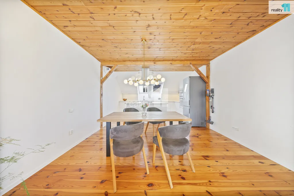 K prodeji nadstandardně prostorný mezonetový byt o dispozici 6+kk se dvěma balkony, v centrum Českých Budějovic, naproti ZŠ Matice školské a v blízkosti Krajské nemocnice. Byt se nachází ve 3. patře bytového domu v jedné z nejžádanějších lokalit centra Českých Budějovic. Celková užitná plocha bytu činí cca 177 m², k tomu náleží dva balkony o celkové výměře 13 m²a sklep. Provozní náklady jsou velmi příznivé vzhledem k velikosti bytu. Příspěvek do SVJ činí přibližně 540 Kč/M, voda cca 830 Kč/M, plyn cca 1 000 Kč/M, elektřina cca 830 Kč/M a možnost parkovací místa na registrační značku za 15.000Kč/R. Celkové průměrné měsíční náklady se tak pohybují okolo 4 450 Kč i s parkovacím místem. Parkování je tak zajištěno vyhrazeným stáním na registrační značku před domem, případně je možné využívat modrou zónu. Dispozice je řešena velmi prakticky a vzdušně. Dominantou bytu je prostorný obývací pokoj propojený s kuchyní, vybavený krbem a moderní kuchyňskou linkou včetně vestavěných spotřebičů. Byt disponuje koupelnou s vanou i sprchovým koutem a je ve velmi dobrém, udržovaném stavu po rekonstrukci. Z oken i balkonů je výhled do udržovaného vnitrobloku a zahrady, která je společná pro vlastníky domu a poskytuje klidné zázemí v centru města. Lokalita nabízí kompletní občanskou vybavenost v docházkové vzdálenosti, včetně škol, obchodů, služeb i zastávek MHD. Nemovitost je ideální pro rodinu hledající nadstandardní prostor v centru města, s výbornou dostupností všech služeb. Více informací Vám poskytne realitní makléřka Ivana Szepová. Ev. číslo: 28119.