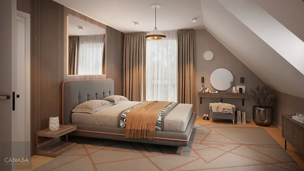 Bohatý vnitřní prostor zahrnuje v přízemí obývací pokoj s prakticky odděleným kuchyňským koutem, pokoj pro hosty a v patře ložnici, dva dětské pokoje a šatnu. Součástí rodinného domu bude také technická místnost, samostatné WC a samostatná koupelna.