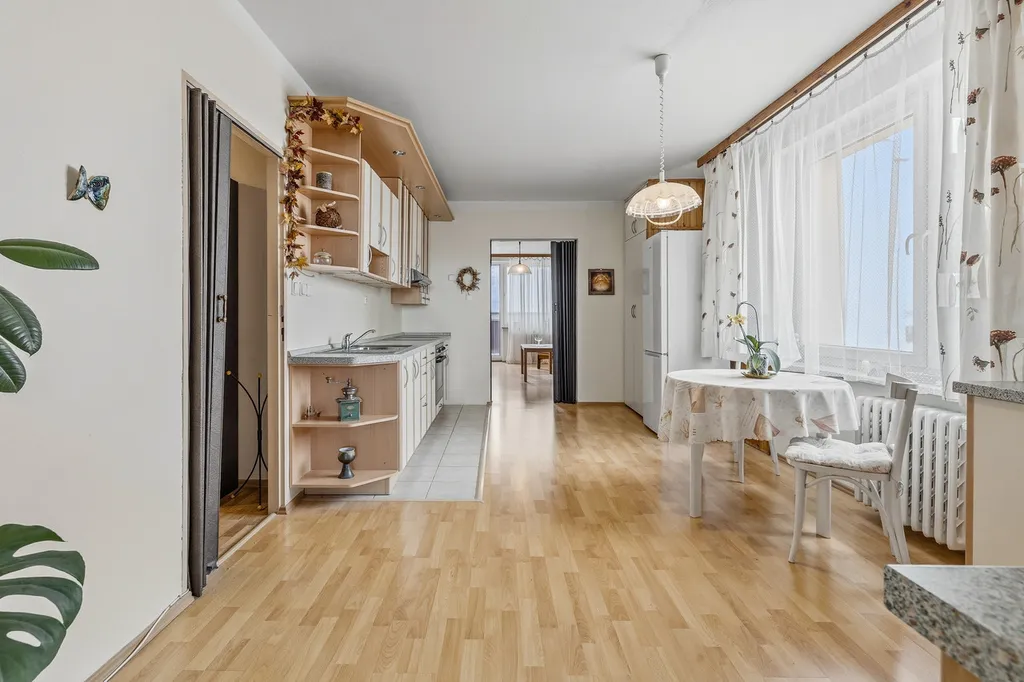 Kuchyň, průchozí do dvou pokojů s lodžiemi, samostatný pokoj se vstupem z chodby, ideální jako ložnice, pracovna či dětský pokoj.
