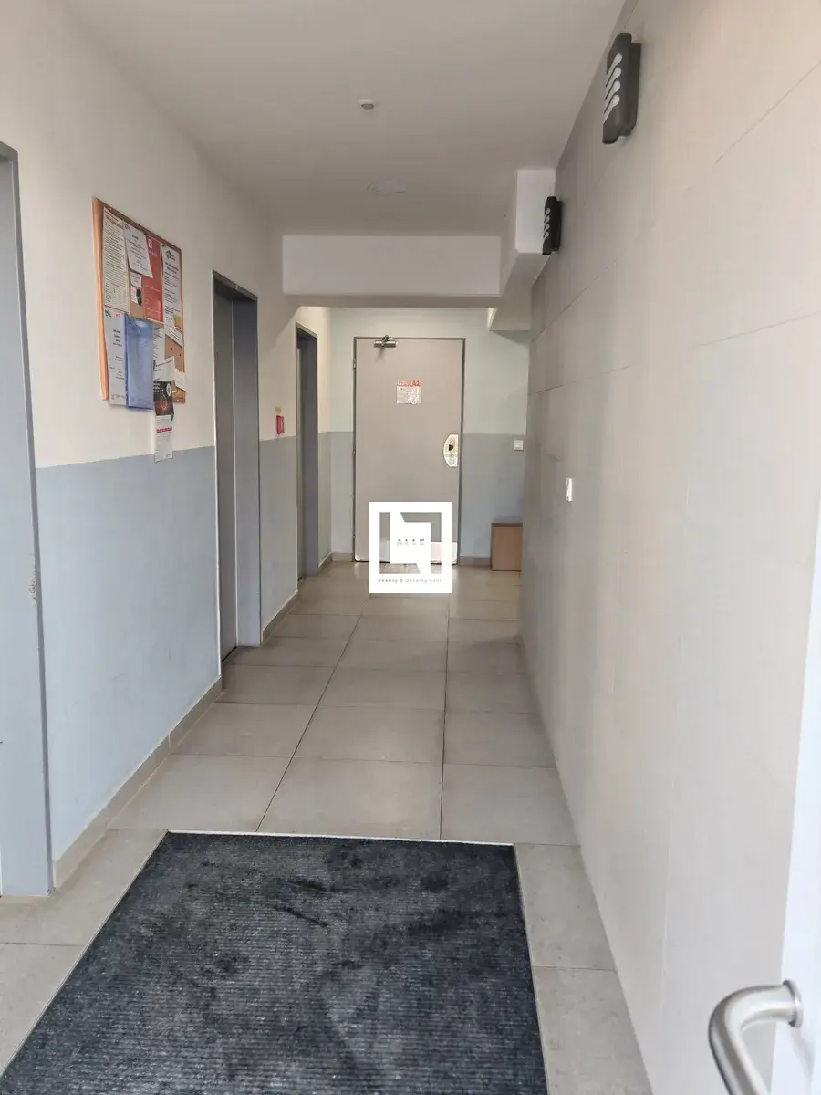 Přes prostornou chodbu vcházíte do obývacího pokoje s kuchyňskou linkou, vybavenou varnou deskou, digestoří, troubou (momentálně dochází k výměně), ledničkou s mrazákem a zabudovanou mikrovlnnou troubou. Z obývacího pokoje je pohodlný vstup na balkon. V bytě je dále ložnice s vestavěnou skříní a samostatná šatna. Koupelna má vanu, umyvadlo, vysokou úložnou skříňku, pračku, otopný žebřík, ale i radiátor umístěný pod plně otevíravým oknem, které zajistí dostatečné větrání.