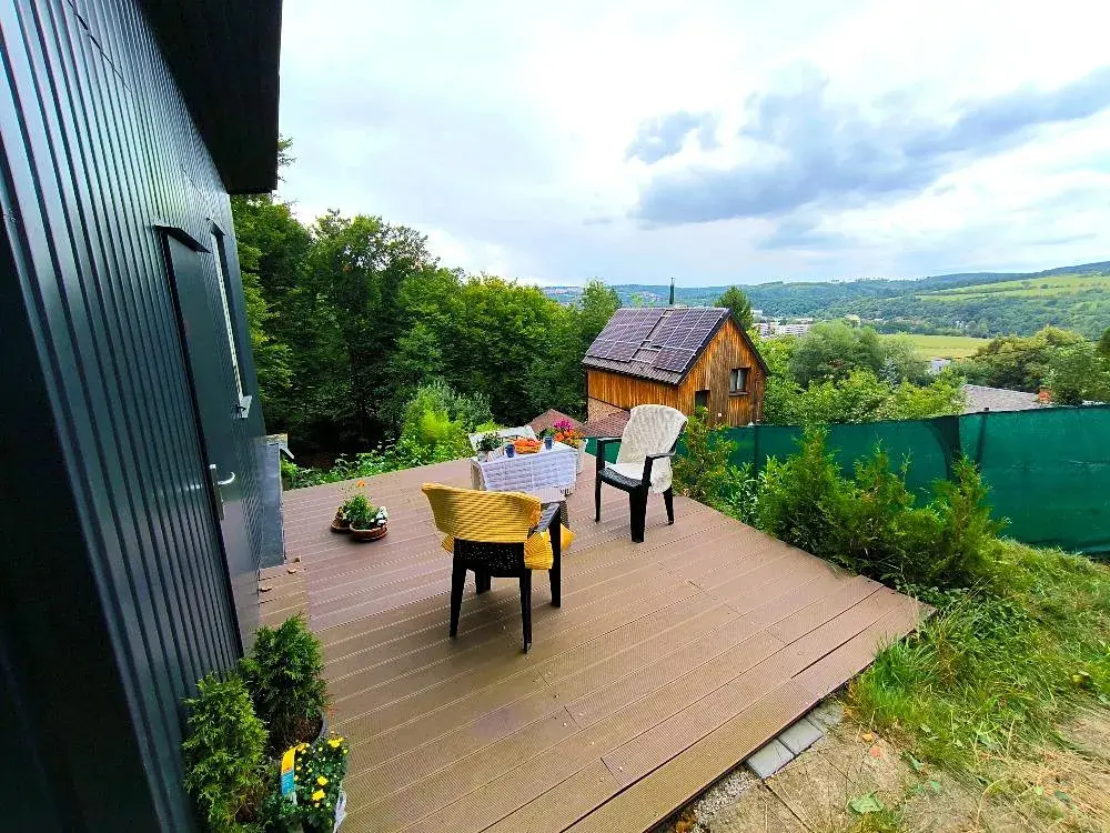 Velkou předností nemovitosti je terasa s výhledem na Zlín a svažitá oplocená zahrada, Za zády les a město u nohou. Nemovitost nabízí možnost seberealizace dle vlastních představ i odpočinek v náruči přírody.
