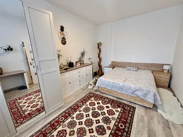 Byt je zařízený vybavenou kuchyňskou linkou s myčkou, manželská postel, rozkládací sedací souprava na občasné přespání, skříň - komoda a jedno pracovní místo.
