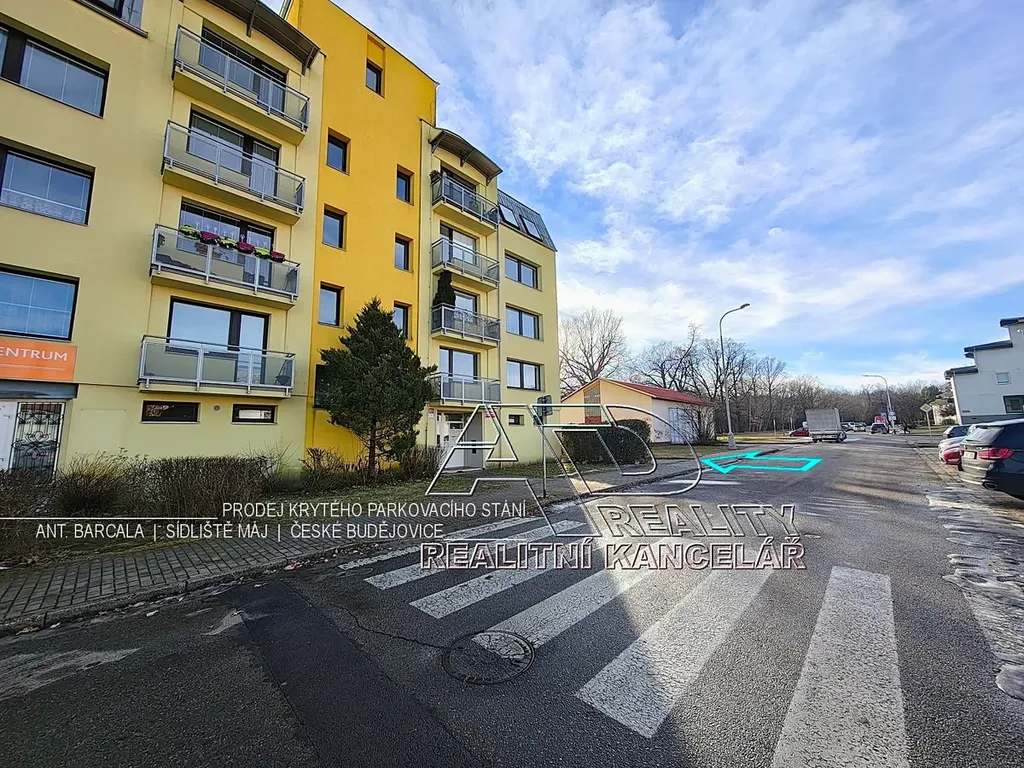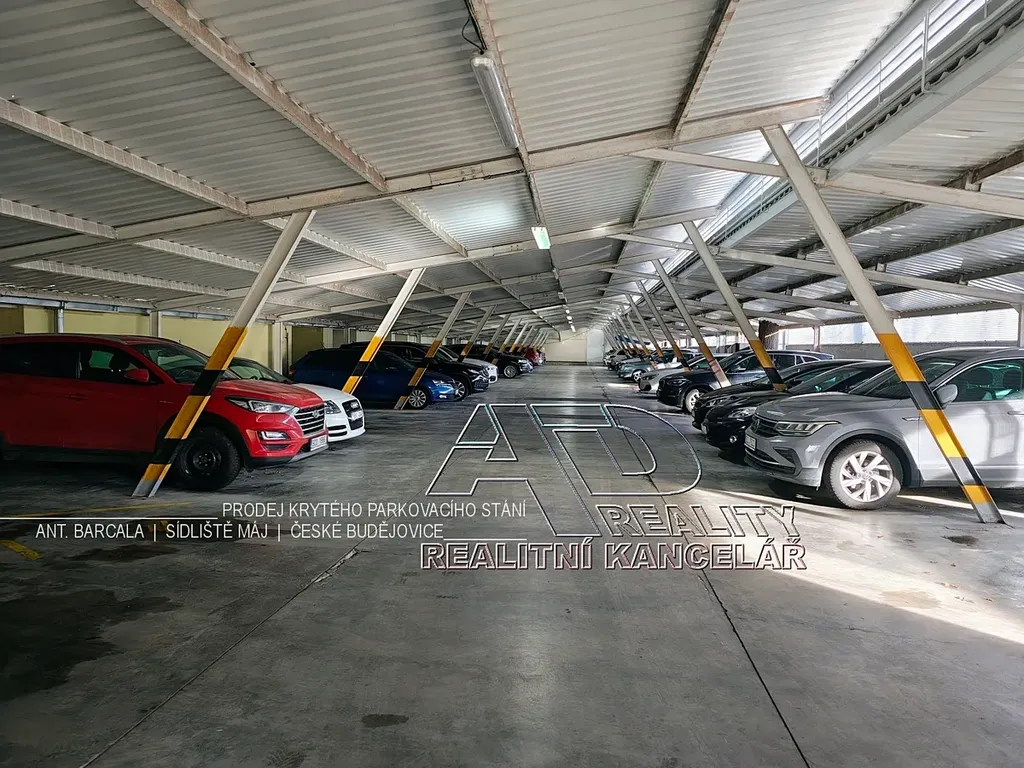 Prodej krytého parkovacího místa (garážového stání) situované v ulici Ant. Barcala na sídlišti Máj v Českých Budějovicích.