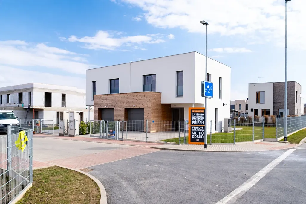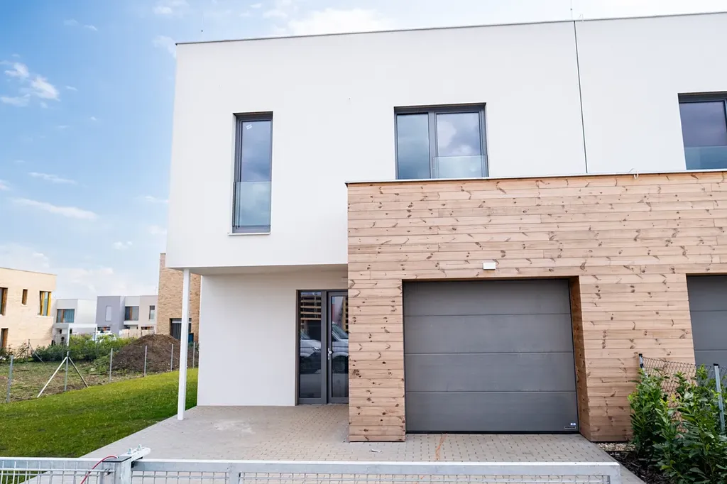 Moderní rodinný dům č. 103 v projektu Domy Bílý vrch nabízí dispozici 5+kk, podlahovou plochu 147 m², garáž a pozemek o velikosti 479 m². Jde o dvojdům v Praze – Horních Počernicích se zahradou s jižní orientací, navržený pro rodinu, která chce vlastní dům, praktickou dispozici a moderní, úsporné bydlení.